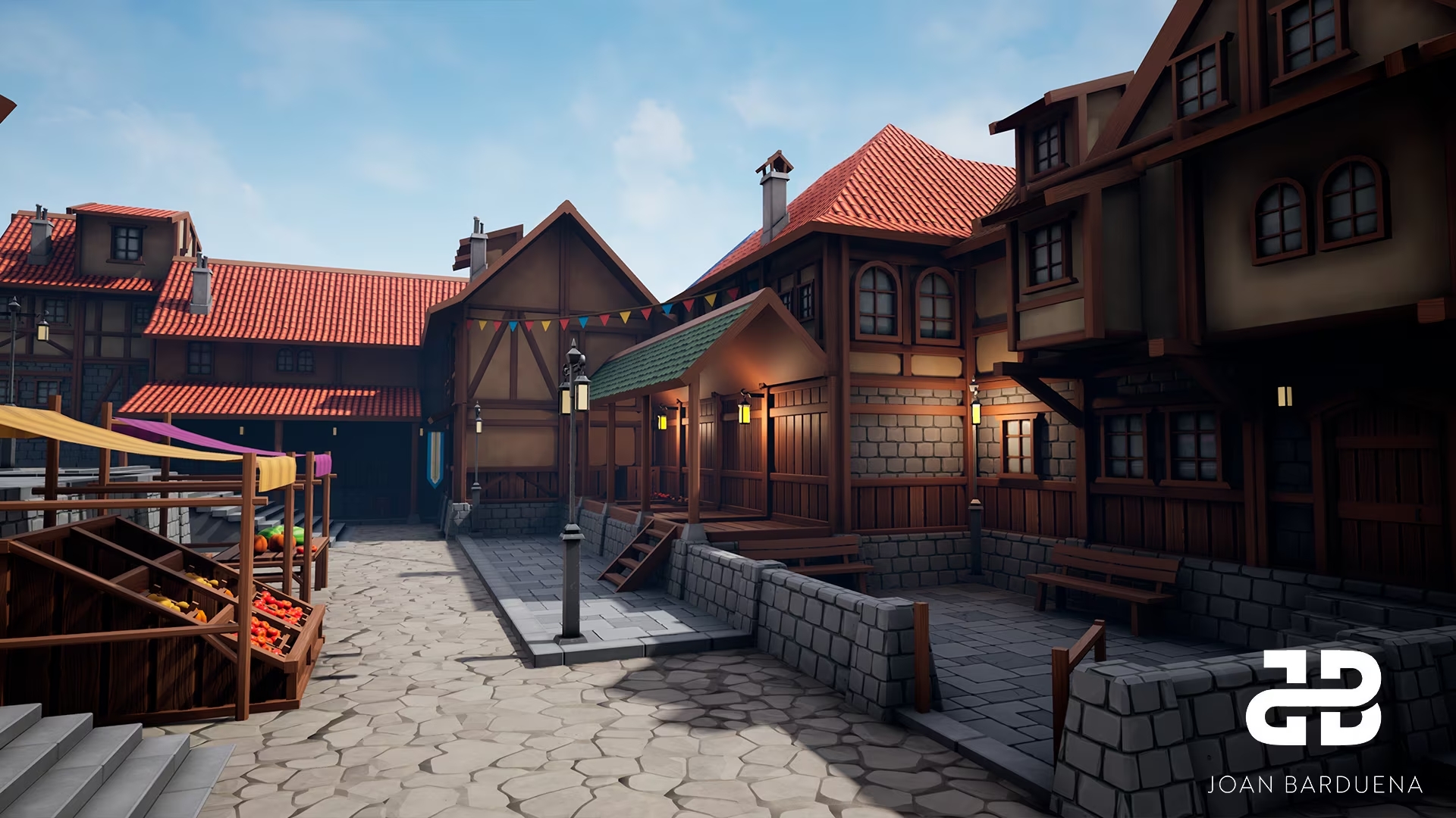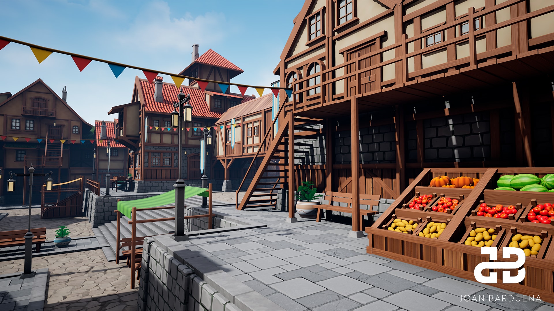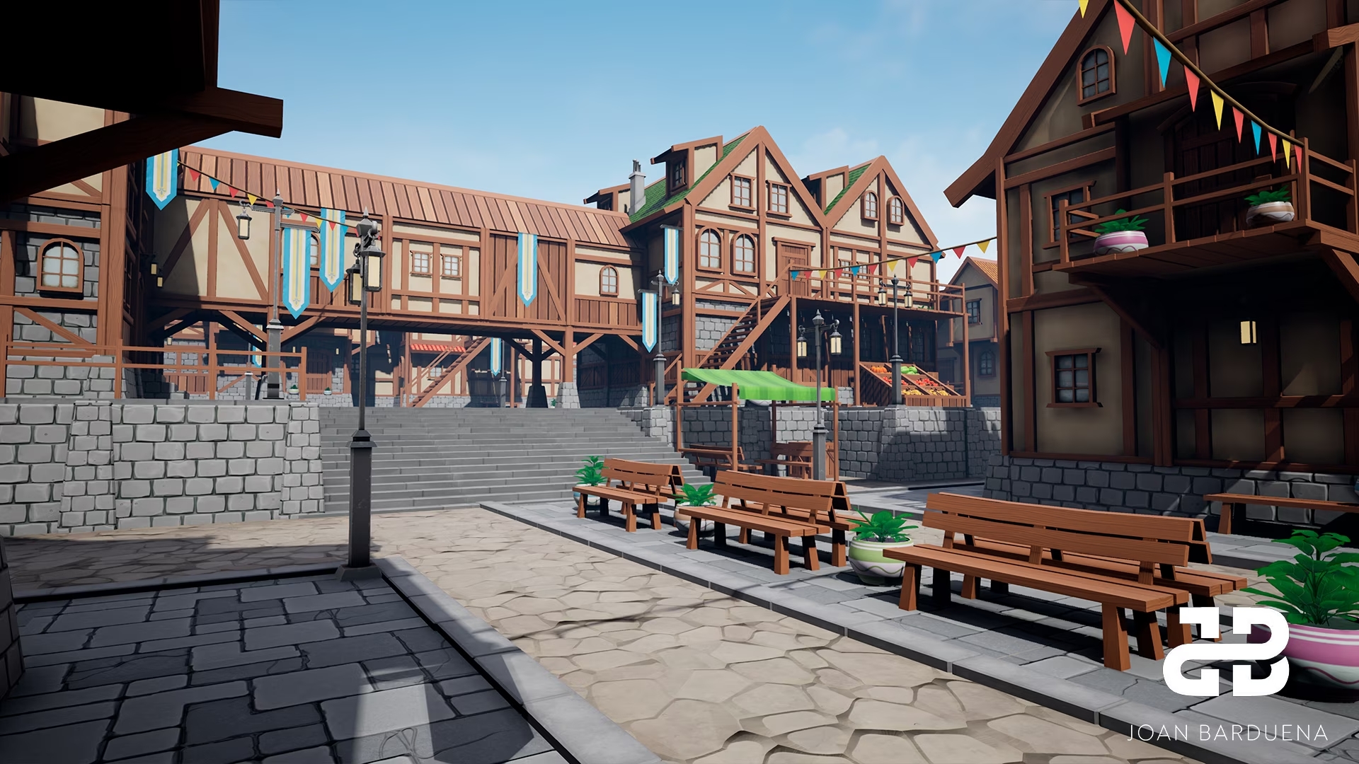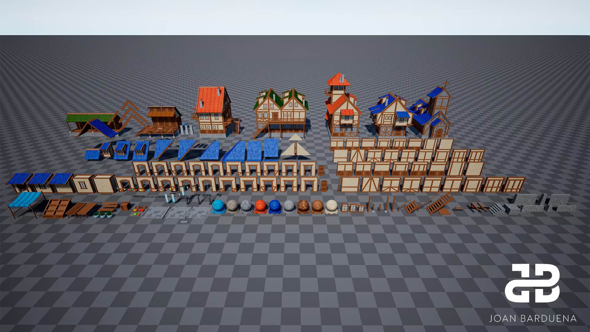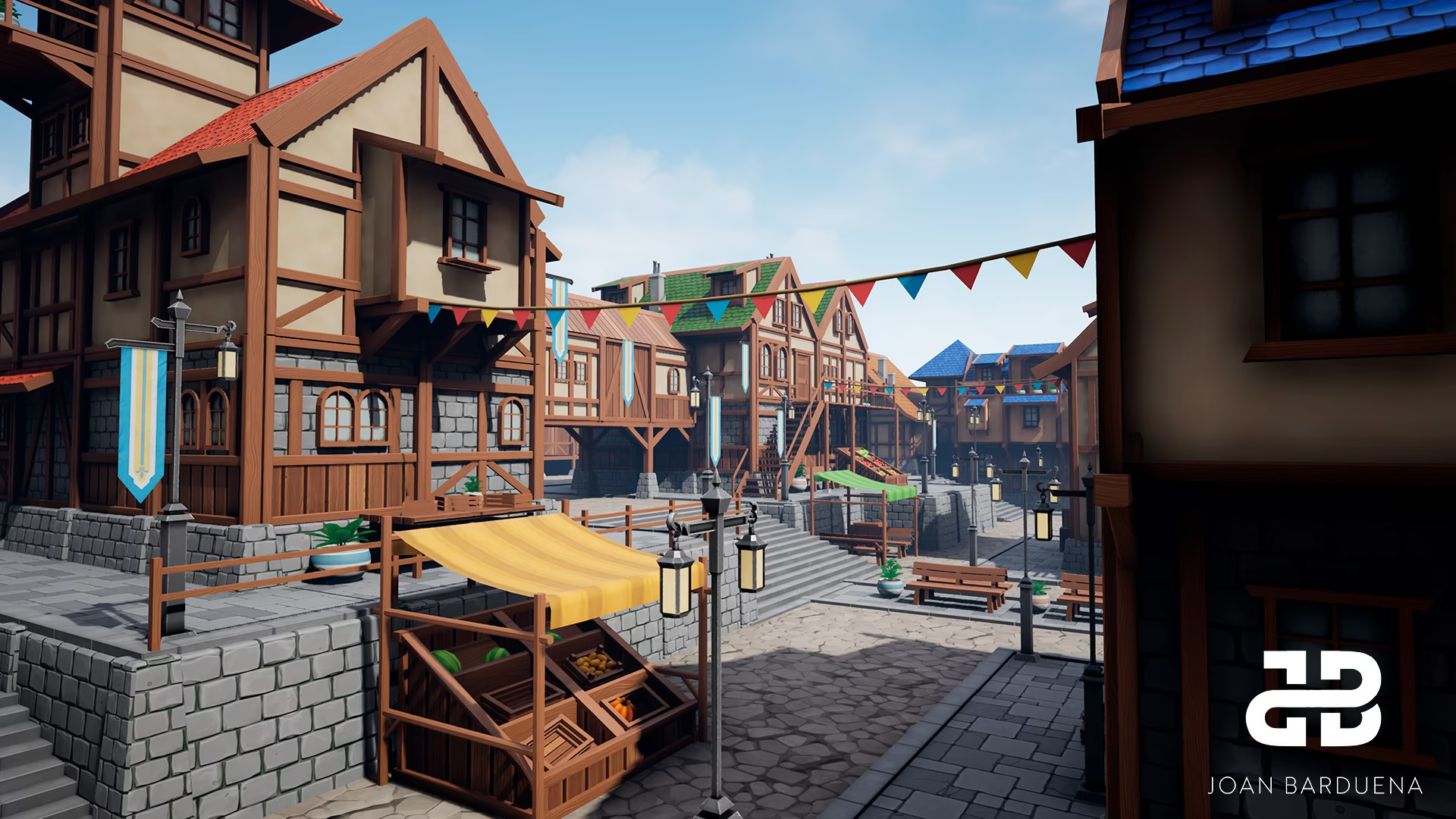 This stylized medieval village asset pack was my Bachelor's Thesis. It contains a set of stylized modular walls, roofs, doors, windows, stairs and street decorations, so the user can create their customized environment.