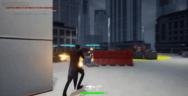 I programmed the game's Artificial Intelligence as well as all player controlls (walk, run, shoot, etc) with Unreal Blueprints.